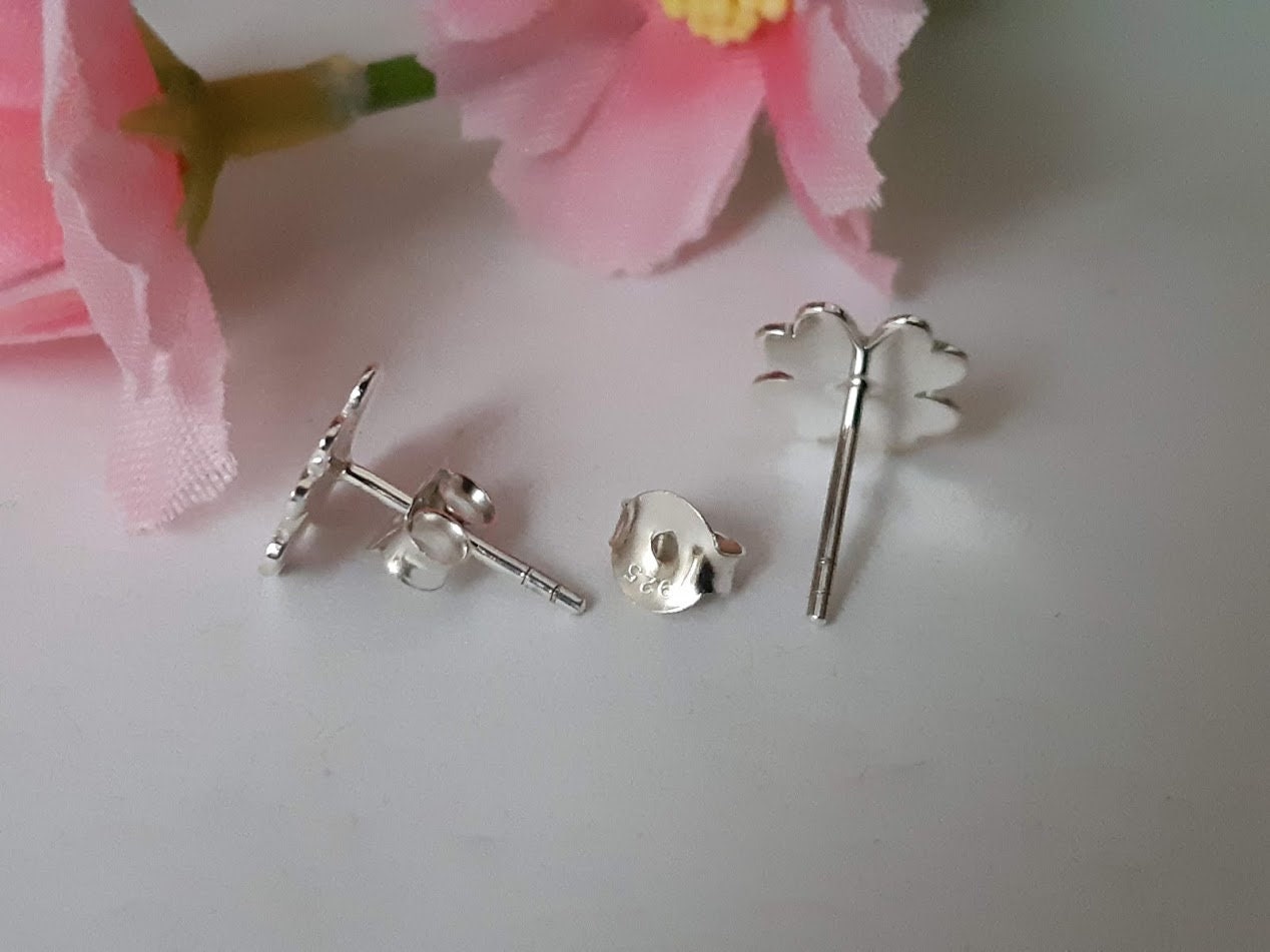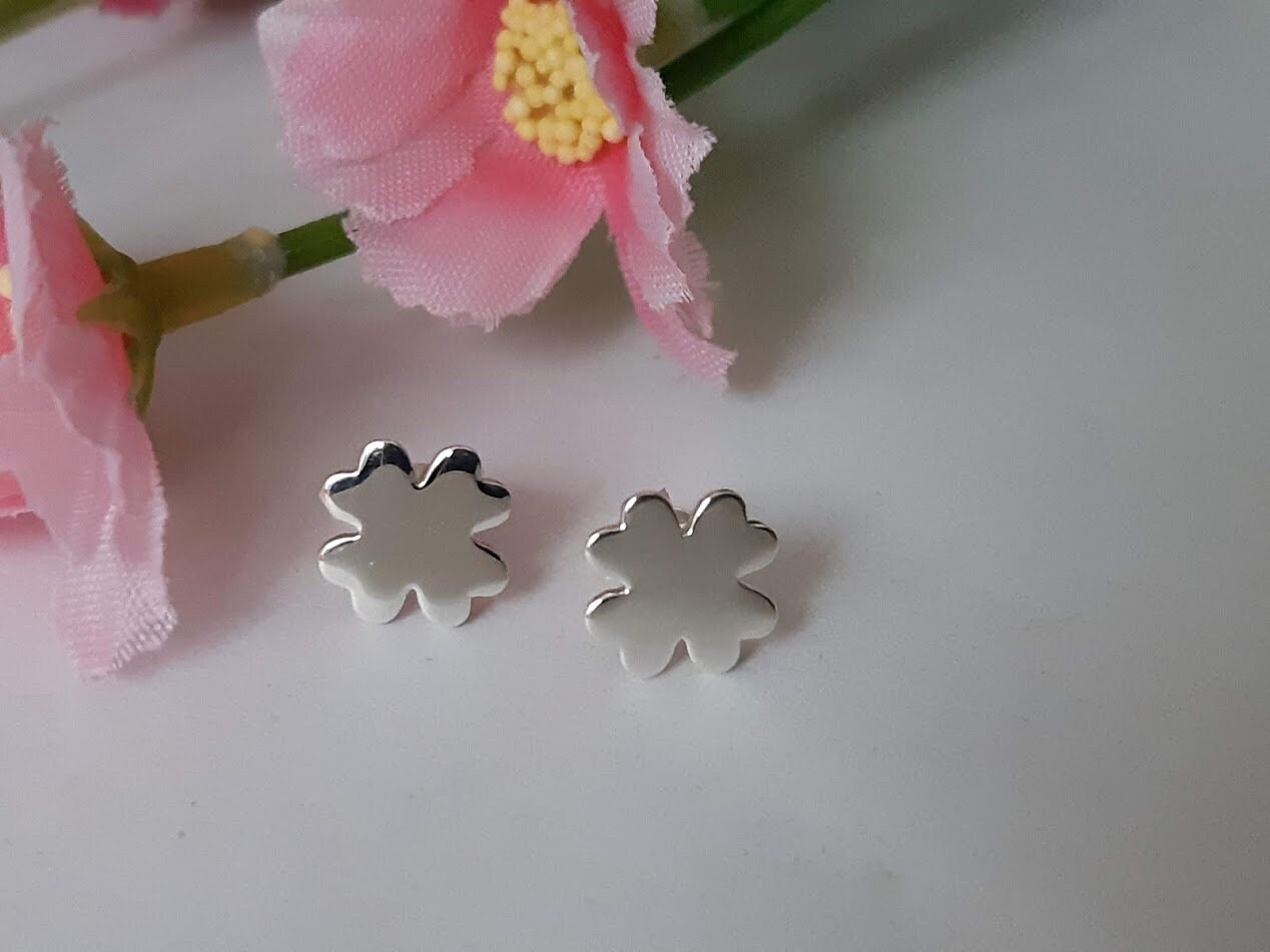 Shimmering Luck: 92.5 Sterling Silver Four Leaf Clover Stud Earrings