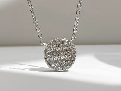 Silver Round Mosaic Halo Necklace – Elegant Sterling Silver Pendant Jewelry for Women