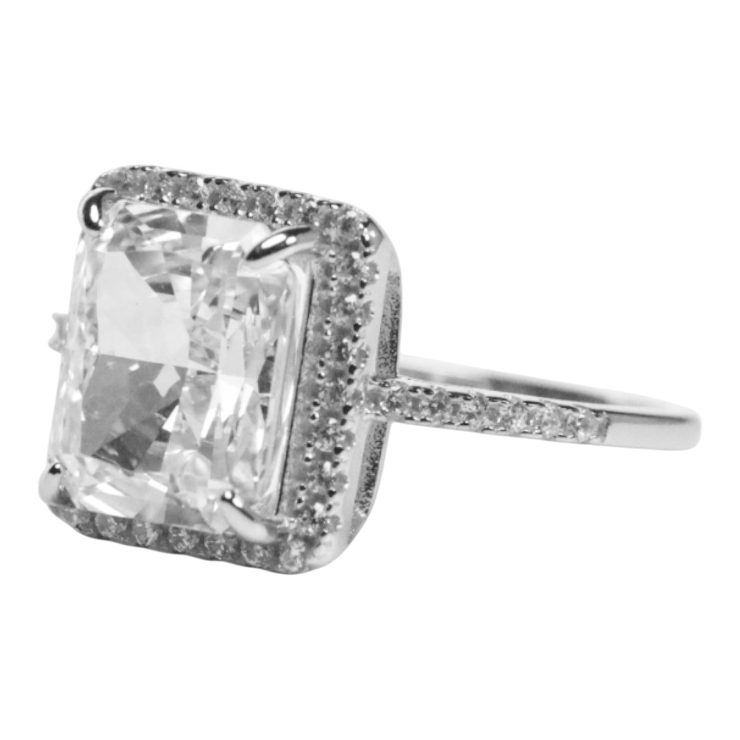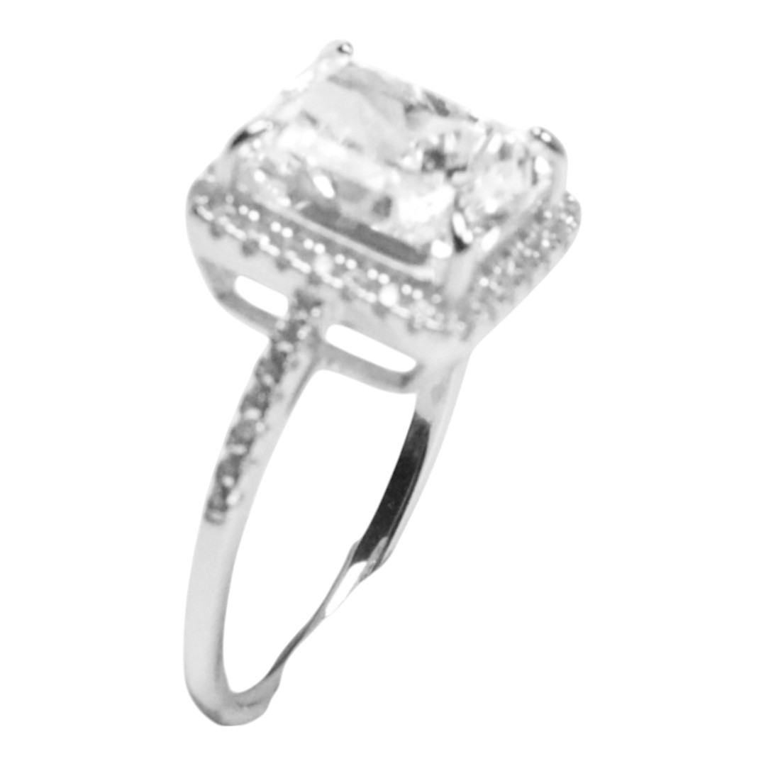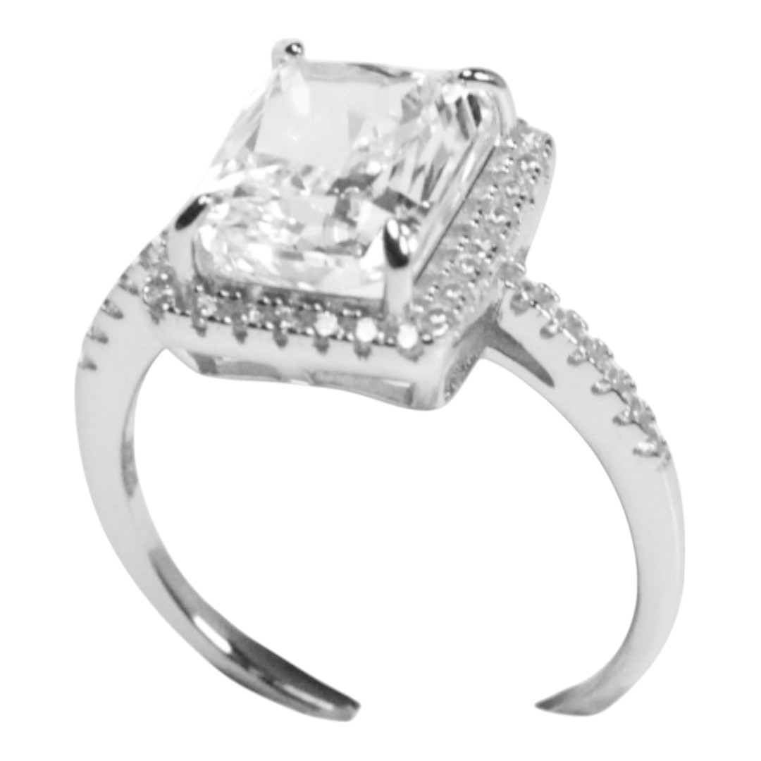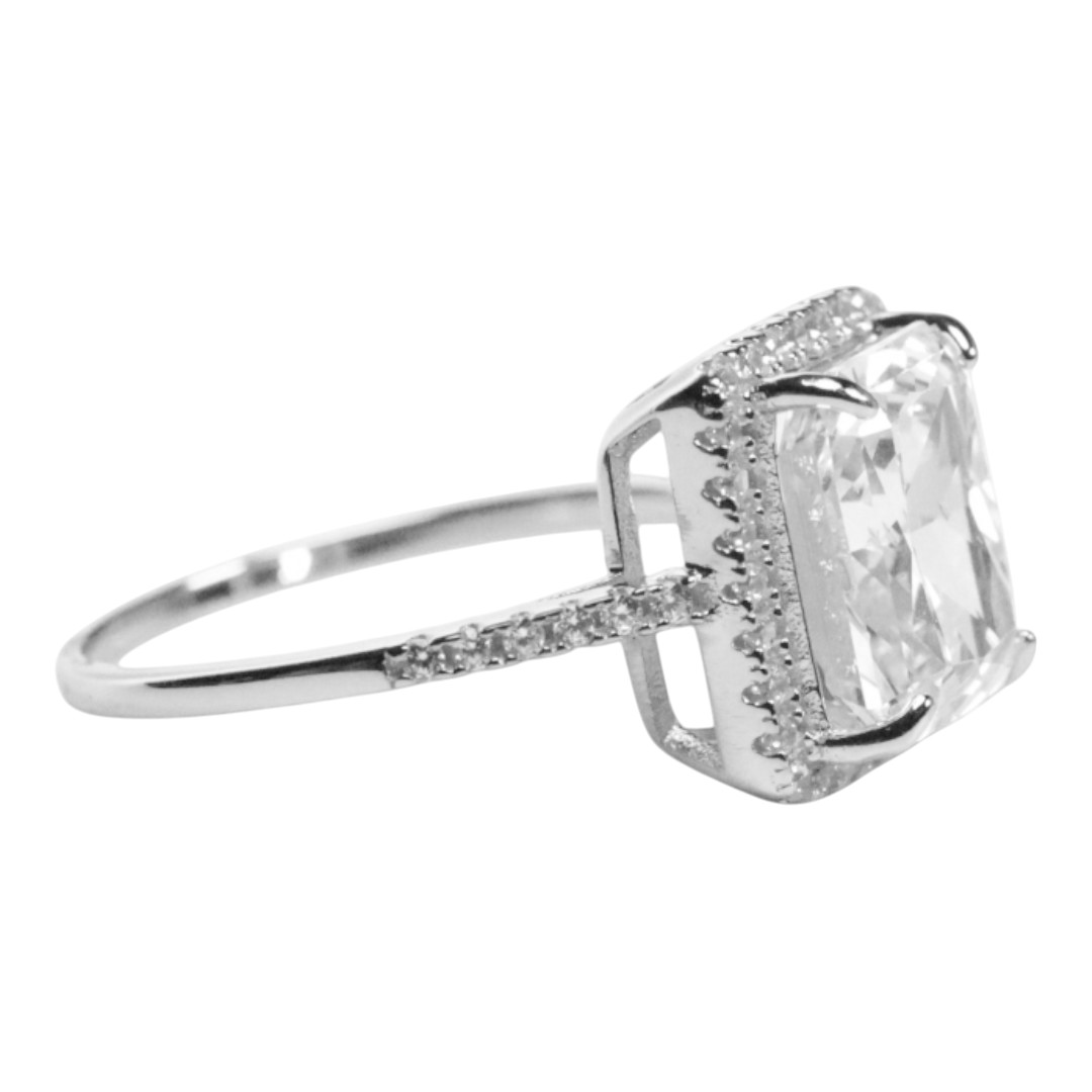 Stunning Sterling Silver Box Shape Ring with Cubic Zirconia