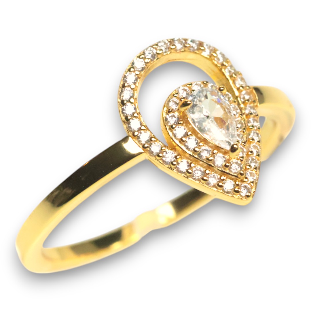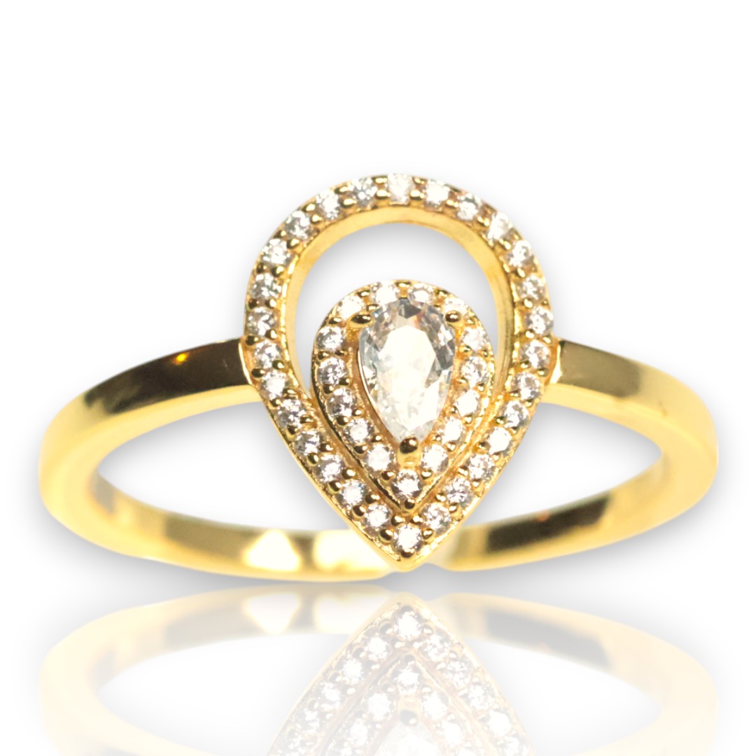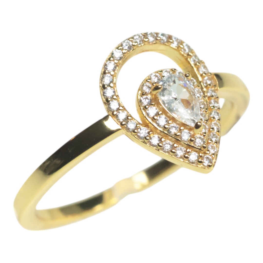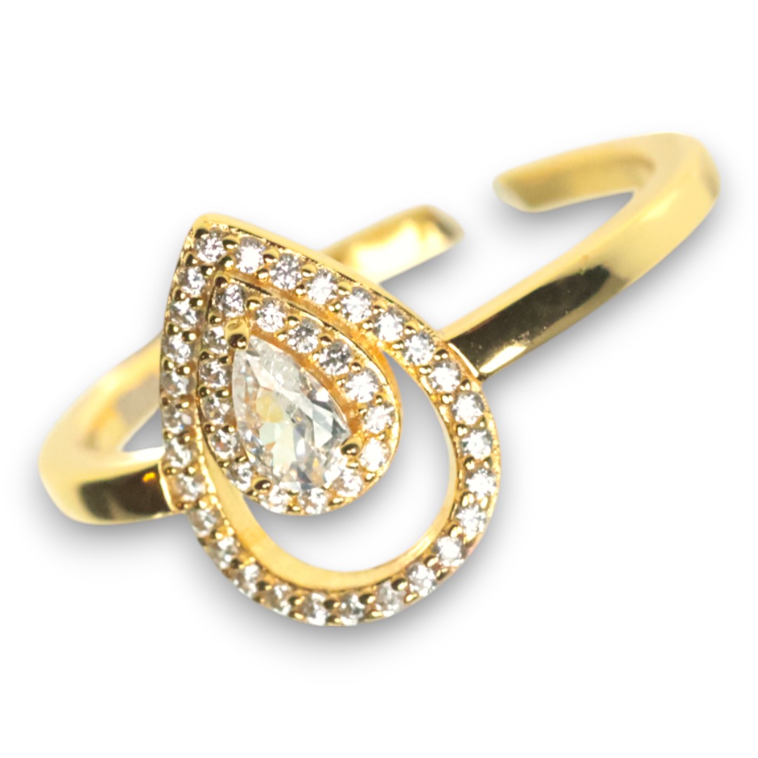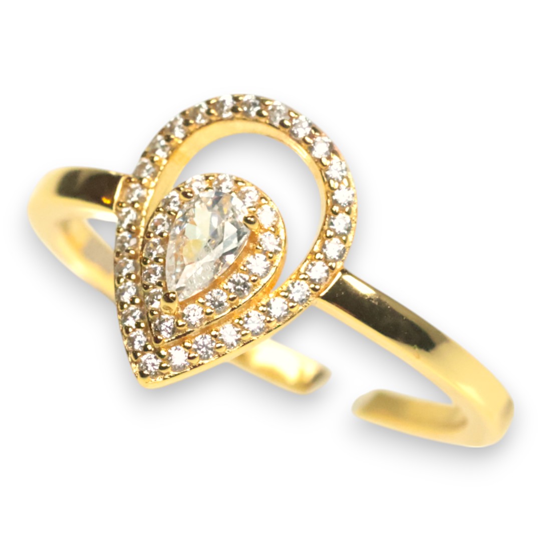 Stunning 18K Gold Plated Sterling Silver Teardrop Cubic Zirconia Ring – Elegant Women’s Jewelry
