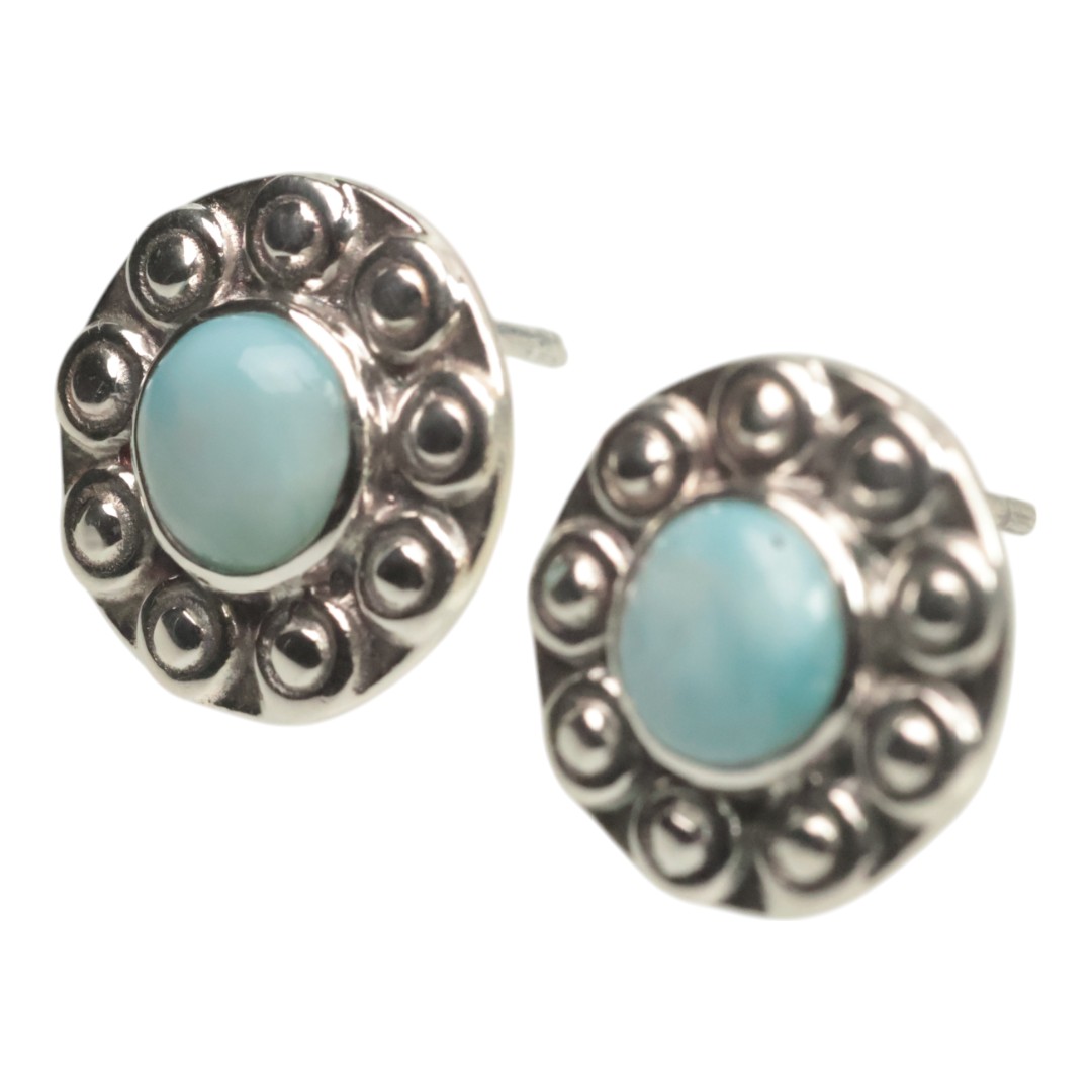 Sunflower Larimar 925 Sterling Silver Stud Earrings – Unique Handmade Gemstone Jewelry