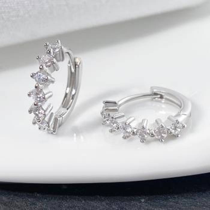 White Gold Plated Sterling Silver Hoop Earrings – Cubic Zirconia Sparkling Hoops for Women
